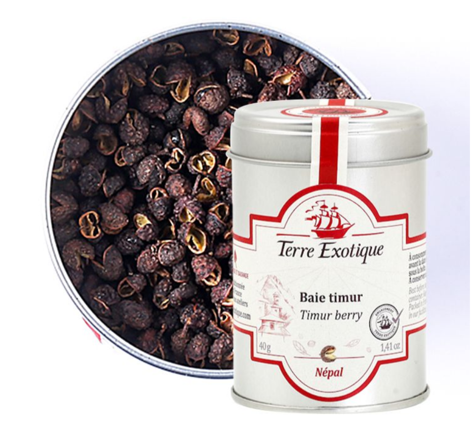 Originaire du Népal, la baie de Timur (ou poivre de Timut) séduit par ses arômes d’agrumes intenses, rappelant le pamplemousse rose et la citronnelle.