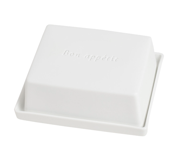 Une belle boîte à beurre grand format en porcelaine, stylisée avec l’inscription « Bon Appétit ». Conçue pour accueillir un demi-paquet de beurre (≈ 250 g), elle combine utilité et design pour une table élégante.