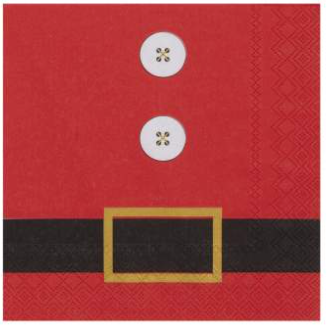Serviettes de table festives au motif Père Noël, idéales pour décorer votre table à l’occasion des fêtes de fin d’année. Format généreux, papier imprimé, emballage de 20 pièces.