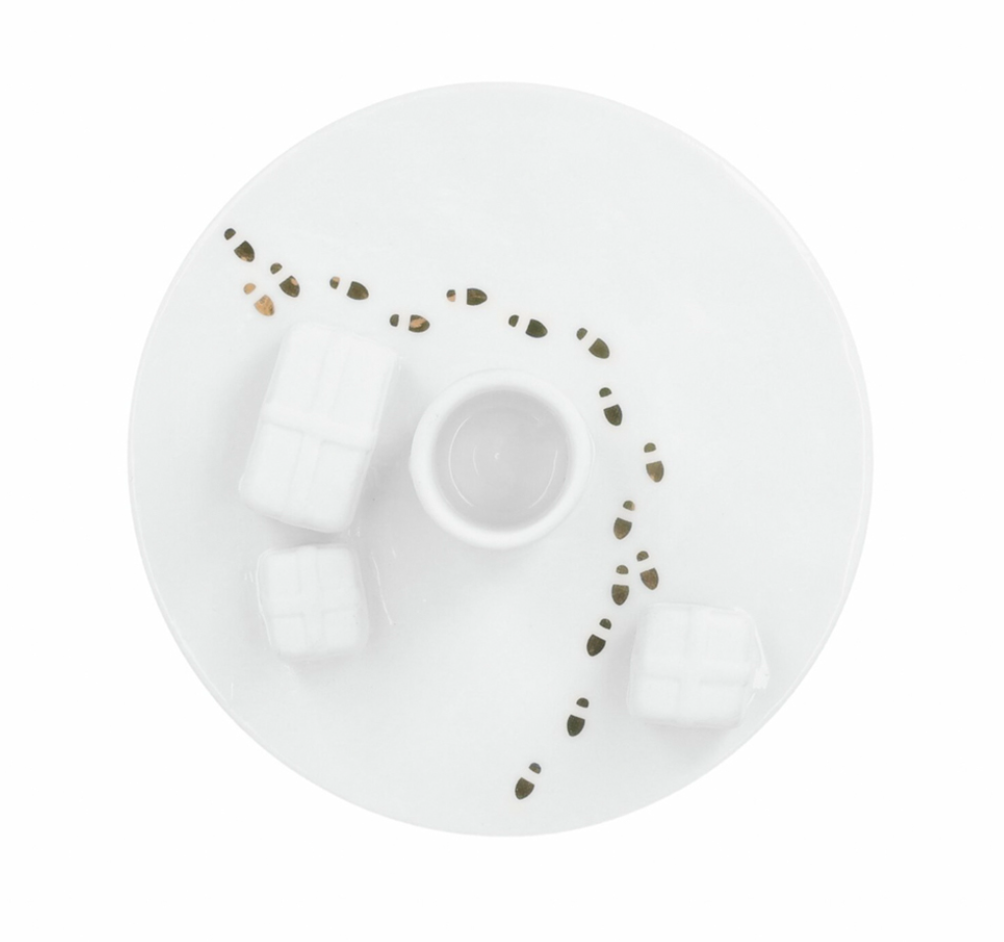 Porcelaine blanche avec décor doré • Ø 11,5 cm, H 3 cm.