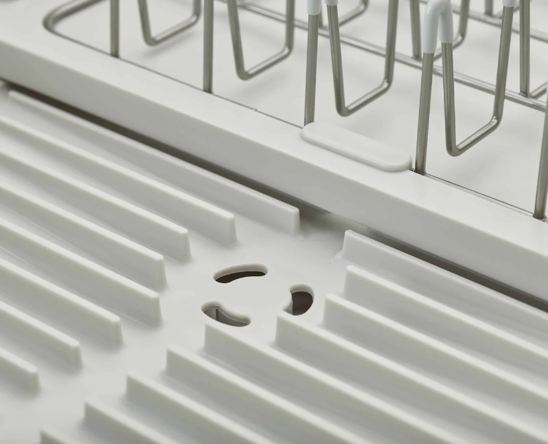 Sa base extensible offre plus d’espace pour la vaisselle, tandis que son bouchon d’évacuation réglable permet un drainage direct dans l’évier.