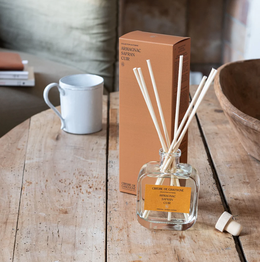 Doffuseur 200 ML armagnac, safran & cuir 7 Batons rotin naturel - Cirerie de Gascogne