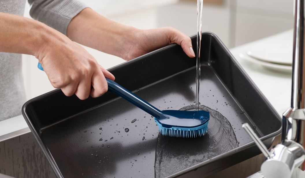 Brosse à vaisselle cleantech à séchage rapide + picots rigides pour un nettoyage efficace.