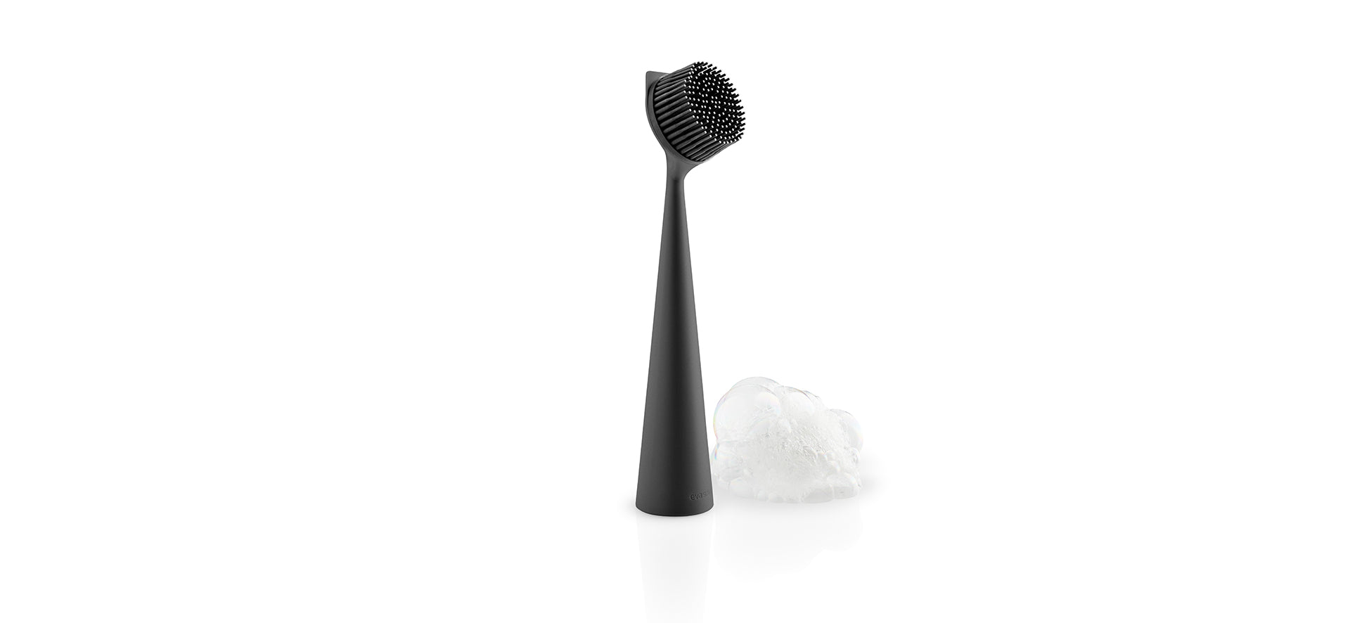 Les poils en silicone, doux mais résistants, sèchent rapidement lorsque la brosse est posée sur la table. Sa base lestée assure sa stabilité. Facile à nettoyer et à entretenir, la brosse supporte à la fois les températures élevées et le lave-vaisselle. La tête de brosse peut être remplacée.