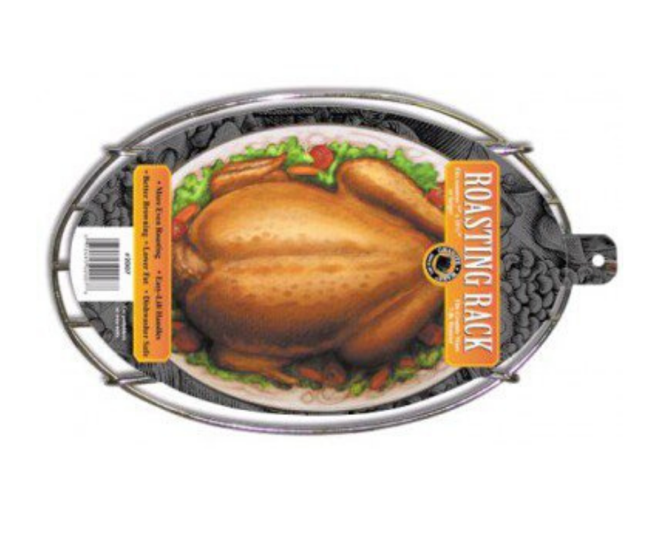 Grille en acier nicklé, apte au contact alimentaire, équipée de poignées articulées pour un rangement facile et pour sortir les aliments de la cocotte.