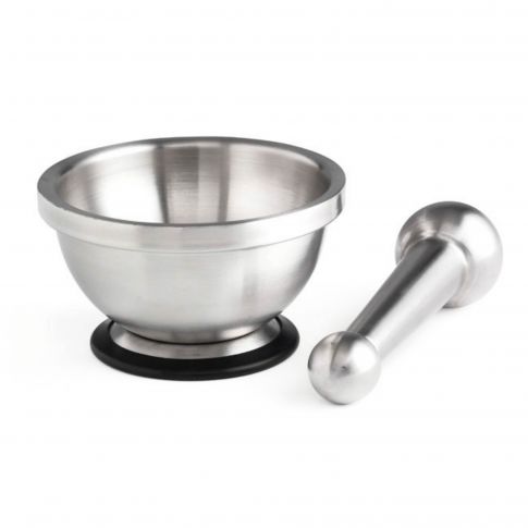 Le corps et le pilon en inox sont taillés pour les recettes les plus robustes et la base antidérapante veille sur votre sécurité. Contrairement à un mortier en bois, ce mortier en acier est non poreux : il ne retient ni odeurs, ni taches.