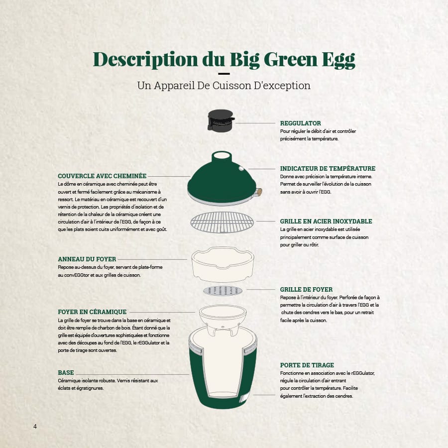 Le Big Green Egg dure toute une vie. Vous pourrez cuisiner une grande variété d'ingrédients et de plats particulièrement savoureux aussi souvent que vous le désirez. Profiter dans une ambiance conviviale des plaisirs de la vie, c’est ce que vous offre le Big Green Egg. Avec votre famille, vos amis ou vos proches, vous dégustez les plats les plus délicieux que vous ayez jamais goûtés. C'est comme cela que naissent les moments inoubliables. N'hésitez pas à préparer vos recettes préférées ou à vous lancer dans la création d'un nouveau plat avec votre EGG ! Les possibilités sont infinies : essayez-les toutes et laissez libre cours à votre créativité ! Faites-vous plaisir avec une entrecôte bien tendre, un délicieux poisson en croûte de sel, un bon ragoût, du pain croustillant, des pizzas à la pâte bien dorée ou encore un délicieux dessert.