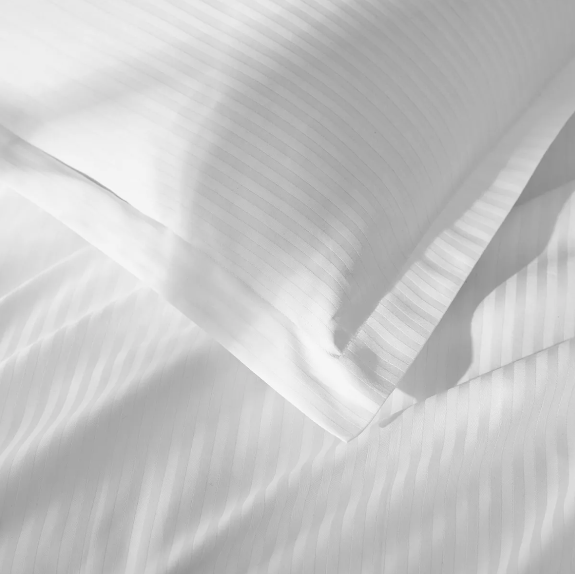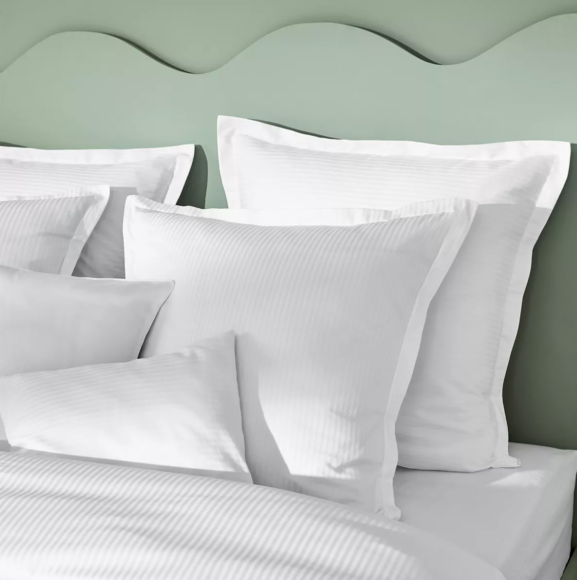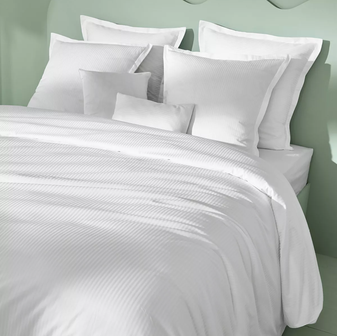 Satin de coton 120 fils/cm², 100 % coton : une matière douce et résistante, issue du savoir-faire hôtelier.