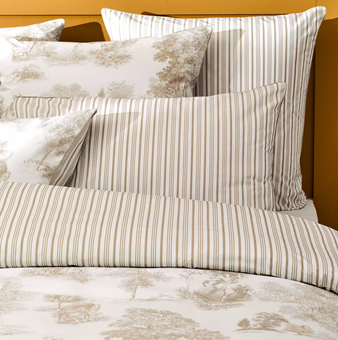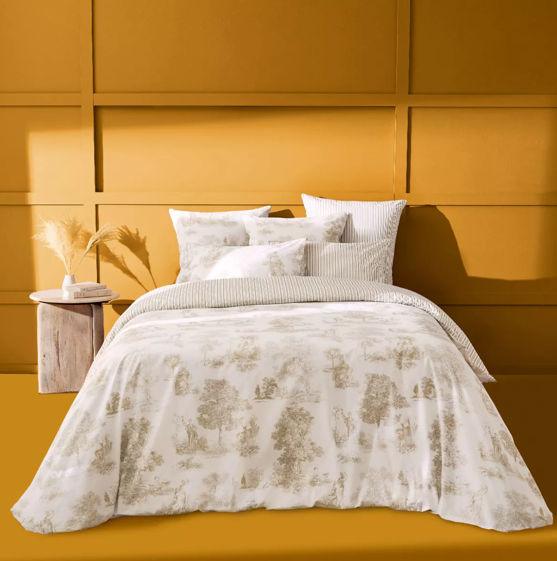 Offrez à votre literie le charme intemporel d’un motif « toile de Jouy », réinterprété par la maison haut de gamme Garnier Thiebaut. La parure « Poésie » allie un imprimé all-over élégant à une matière noble en percale de coton français — pour des nuits au confort raffiné.