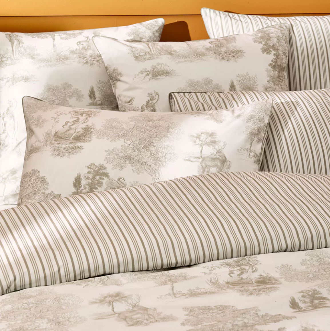 Pour un intérieur qui marie élégance classique et charme discret : le motif toile de Jouy donne du caractère tout en restant apaisant.