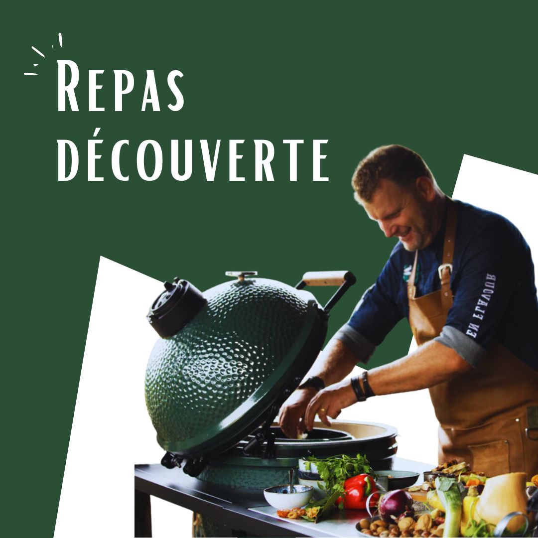 Dans une ambiance intimiste et chaleureuse, installez-vous à table pendant que le chef sublime des produits de saison sous vos yeux. Entrée, plat et dessert sont cuisinés exclusivement au Big Green Egg, révélant des textures parfaites, des fumaisons délicates et des arômes incomparables.