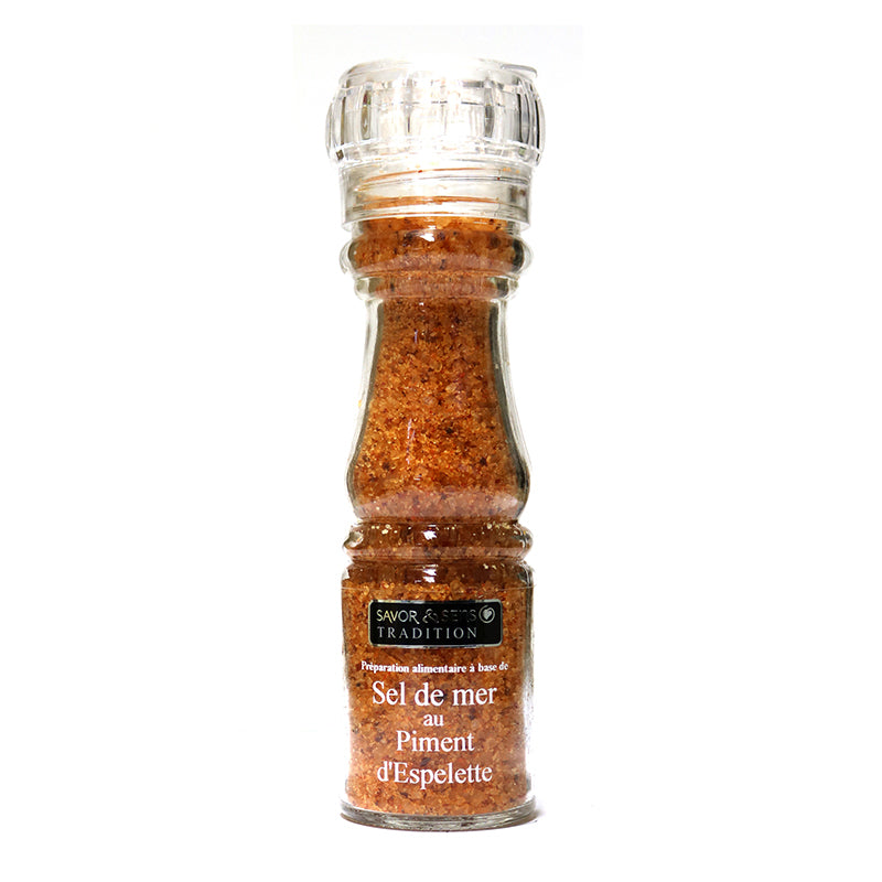 Un mélange de sel de mer et piment d’Espelette AOP équilibré et peu piquant pour relever vos viandes et poissons !