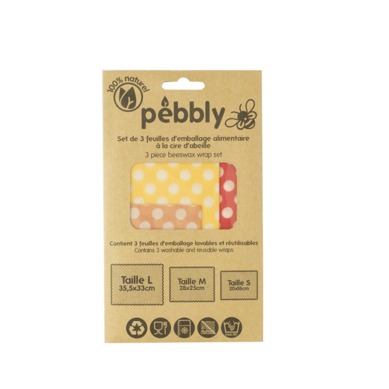 Set de 3 feuilles d'emballage à la cire d'abeille - Pebbly